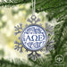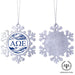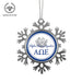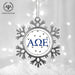 • UNIQUE SNOWFLAKE DESIGN: Featuring an elegant snowflake shape with intricate metal detailing, this ornament brings a frosty sparkle to your tree. The custom Alpha Omega Epsilon design on the front adds a personal and festive touch.