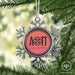 • UNIQUE SNOWFLAKE DESIGN: Featuring an elegant snowflake shape with intricate metal detailing, this ornament brings a frosty sparkle to your tree. The custom Alpha Omicron Pi design on the front adds a personal and festive touch.