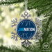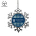 • UNIQUE SNOWFLAKE DESIGN: Featuring an elegant snowflake shape with intricate metal detailing, this ornament brings a frosty sparkle to your tree. The custom Augusta University design on the front adds a personal and festive touch.