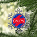• UNIQUE SNOWFLAKE DESIGN: Featuring an elegant snowflake shape with intricate metal detailing, this ornament brings a frosty sparkle to your tree. The custom Chi Phi design on the front adds a personal and festive touch.
