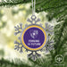 • UNIQUE SNOWFLAKE DESIGN: Featuring an elegant snowflake shape with intricate metal detailing, this ornament brings a frosty sparkle to your tree. The custom Delta Tau Delta design on the front adds a personal and festive touch.