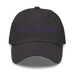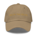 Size and shape: Unisex style, one size. Unstructured, 6-panel, low-profile. 3 ⅛” (7.6 cm) crown. Adjustable strap with antique buckle.
