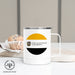 13 oz Stainless Steel Travel Mug — the perfect size and shape, with a comfortable handle. Works great with most coffee machines.