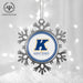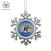 • UNIQUE SNOWFLAKE DESIGN: Featuring an elegant snowflake shape with intricate metal detailing, this ornament brings a frosty sparkle to your tree. The custom Kent State University design on the front adds a personal and festive touch.