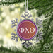 • UNIQUE SNOWFLAKE DESIGN: Featuring an elegant snowflake shape with intricate metal detailing, this ornament brings a frosty sparkle to your tree. The custom Phi Chi Theta design on the front adds a personal and festive touch.