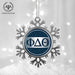 • UNIQUE SNOWFLAKE DESIGN: Featuring an elegant snowflake shape with intricate metal detailing, this ornament brings a frosty sparkle to your tree. The custom Phi Delta Theta design on the front adds a personal and festive touch.