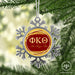 • UNIQUE SNOWFLAKE DESIGN: Featuring an elegant snowflake shape with intricate metal detailing, this ornament brings a frosty sparkle to your tree. The custom Phi Kappa Theta design on the front adds a personal and festive touch.