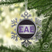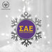 • UNIQUE SNOWFLAKE DESIGN: Featuring an elegant snowflake shape with intricate metal detailing, this ornament brings a frosty sparkle to your tree. The custom Sigma Alpha Epsilon design on the front adds a personal and festive touch.