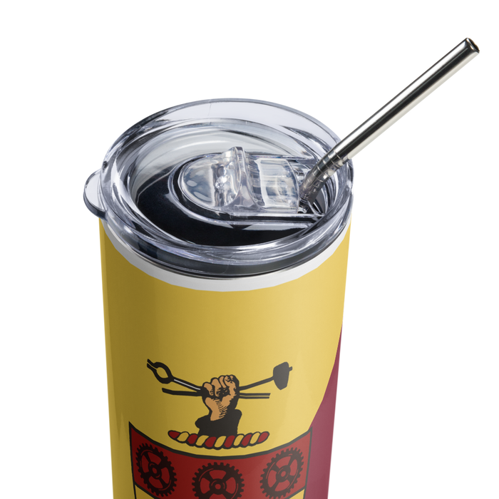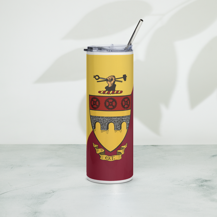 Theta Tau Custom Skinny Tumbler 20 OZ with clear lid and metal straw is made from premium high-quality double-walled non-leaching and non-toxic stainless steel.