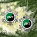 • UNIQUE SNOWFLAKE DESIGN: Featuring an elegant snowflake shape with intricate metal detailing, this ornament brings a frosty sparkle to your tree. The custom University of North Texas design on the front adds a personal and festive touch.