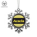 • UNIQUE SNOWFLAKE DESIGN: Featuring an elegant snowflake shape with intricate metal detailing, this ornament brings a frosty sparkle to your tree. The custom Acacia Fraternity design on the front adds a personal and festive touch.