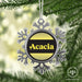 • PREMIUM QUALITY MATERIAL: Our Acacia Fraternity Snowflake Ornament is crafted from durable zinc alloy with a sleek metallic finish on the back. The front features a beautifully printed design, making it a standout piece for your holiday decorations.