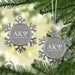 • UNIQUE SNOWFLAKE DESIGN: Featuring an elegant snowflake shape with intricate metal detailing, this ornament brings a frosty sparkle to your tree. The custom Alpha Kappa Psi design on the front adds a personal and festive touch.