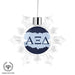 • IMPECCABLE GRAPHICS: Alpha Xi Delta Custom Holiday Snowflake Round Ornament features Alpha Xi Delta name, logo, and motto.