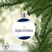 Decorate your holiday tree on Christmas with custom Alpha Xi Delta Round Flat Ornament.