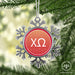 • UNIQUE SNOWFLAKE DESIGN: Featuring an elegant snowflake shape with intricate metal detailing, this ornament brings a frosty sparkle to your tree. The custom Chi Omega design on the front adds a personal and festive touch.
