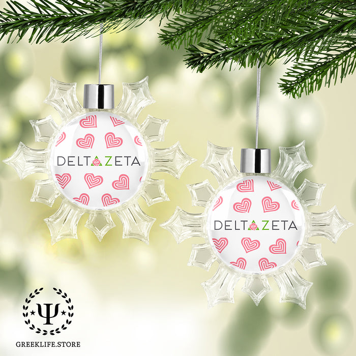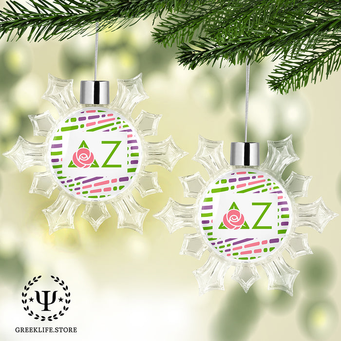 • PREMIUM QUALITY MATERIAL: Delta Zeta Holiday Snowflake Ornament is made from Transparency Plastic. This Double-sided Snowflake is a perfect décor for Holidays!