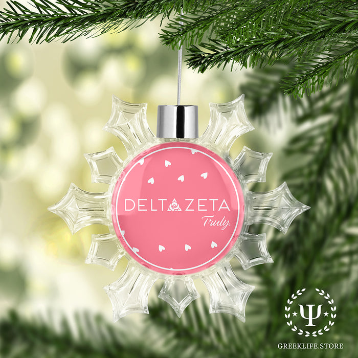Decorate your holiday tree on Christmas with custom Delta Zeta Holiday Snowflake Round Ornament.