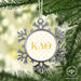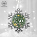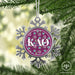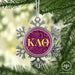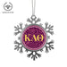 • UNIQUE SNOWFLAKE DESIGN: Featuring an elegant snowflake shape with intricate metal detailing, this ornament brings a frosty sparkle to your tree. The custom Kappa Alpha Theta design on the front adds a personal and festive touch.