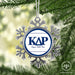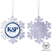 • UNIQUE SNOWFLAKE DESIGN: Featuring an elegant snowflake shape with intricate metal detailing, this ornament brings a frosty sparkle to your tree. The custom Kappa Delta Rho design on the front adds a personal and festive touch.