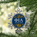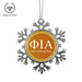 • UNIQUE SNOWFLAKE DESIGN: Featuring an elegant snowflake shape with intricate metal detailing, this ornament brings a frosty sparkle to your tree. The custom Phi Iota Alpha design on the front adds a personal and festive touch.