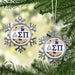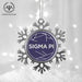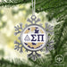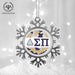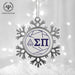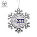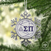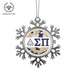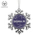 • UNIQUE SNOWFLAKE DESIGN: Featuring an elegant snowflake shape with intricate metal detailing, this ornament brings a frosty sparkle to your tree. The custom Sigma Pi design on the front adds a personal and festive touch.