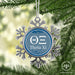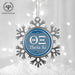 • UNIQUE SNOWFLAKE DESIGN: Featuring an elegant snowflake shape with intricate metal detailing, this ornament brings a frosty sparkle to your tree. The custom Theta Xi design on the front adds a personal and festive touch.