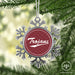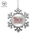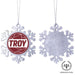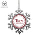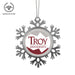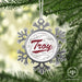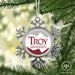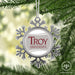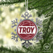 • UNIQUE SNOWFLAKE DESIGN: Featuring an elegant snowflake shape with intricate metal detailing, this ornament brings a frosty sparkle to your tree. The custom Troy University design on the front adds a personal and festive touch.